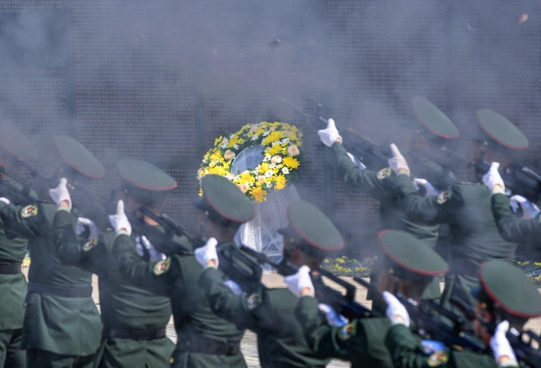 图为9月13日,礼兵连续鸣枪12响,向志愿军烈士致以崇高敬意。张永进 摄