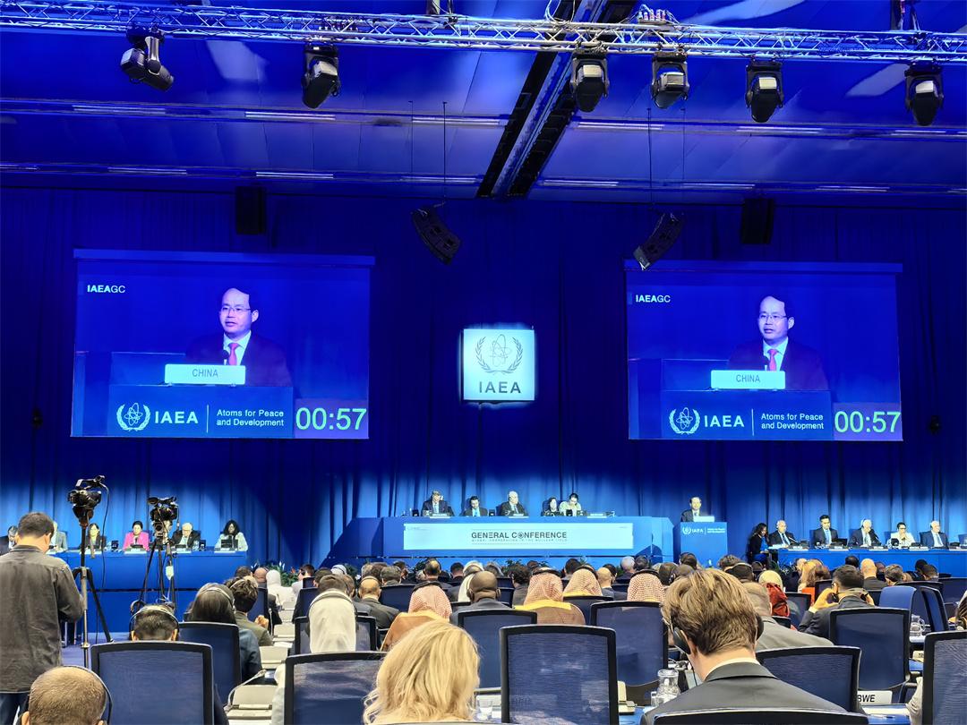 中方强调,当前核领域全球治理正面临政治化、阵营化、对抗化等多重挑战,但发展与合作仍是IAEA的主旋律。中方愿与 IAEA和各国一道,携手推动全球核能治理更加公正合理、发展更加普惠包容、合作更加开放有序,更好构建人类命运共同体。一是践行全球发展倡议,共育核产业发展新动能。坚持发展优先、普惠包容、行动导向,共同推动IAEA“原子用于净零排放”“希望之光”等旗舰倡议走深走实,帮助“全球南方”国家夯实发展根基、培育发展动能,积极促进“原子造福全球南方”。二是践行全球安全倡议,共建核安全命运共同体。坚持理性、协调、并进的核安全观,构建公平、合作、共赢的国际核安全体系,妥善处理核不扩散与和平利用核能关系,坚持政治外交手段和平解决地区核问题。三是践行全球文明倡议,共植核科技交流百花园。坚持以人为本、科技向善,有序扩大核科技交流合作,加大对“全球南方”核科学教育、人才培养的支持和帮助,共促核科技创新和知识传承。四是践行全球治理倡议,共创核治理体系新格局。共同维护国际核不扩散体系完整性和权威性,反对核能发展合作中的单边主义、保护主义和排他性、歧视性做法;推进IAEA理事会扩员改革,提升“全球南方”国家代表性。