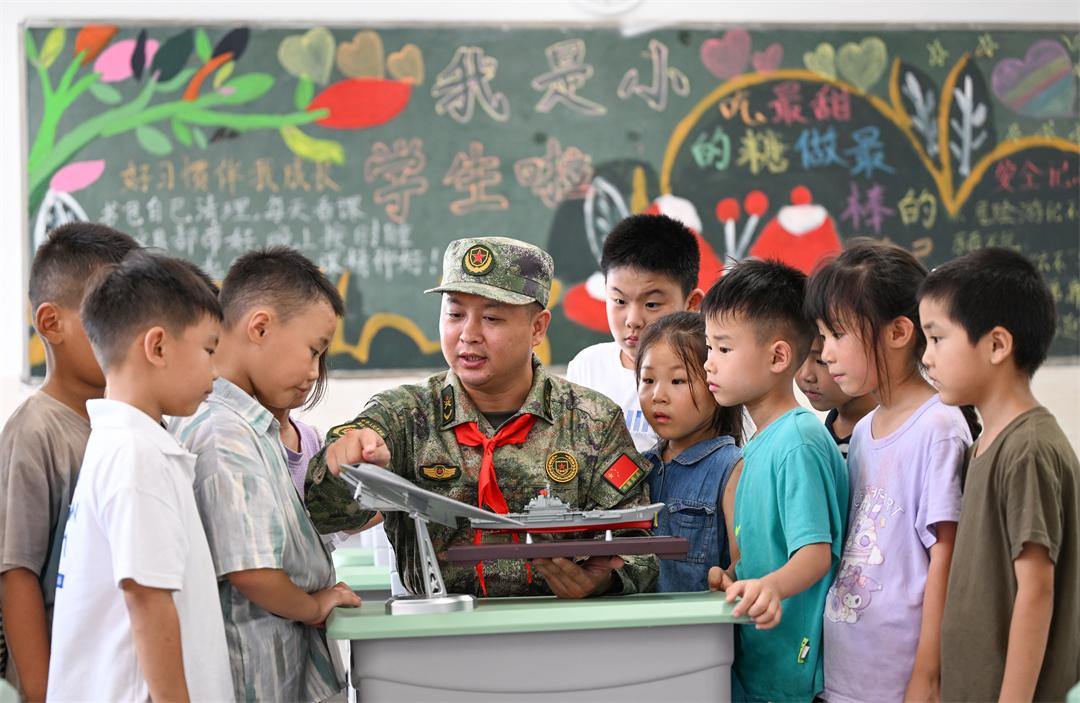 图为水湖镇人武部走进志和小学,开展“心系国防 强国有我”主题活动,增强学生国防意识,厚植爱国情怀。