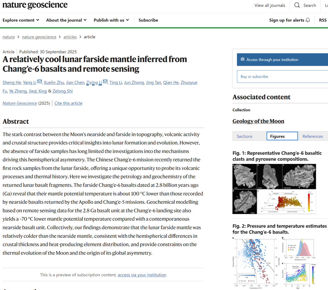 图为《自然·地球科学》(Nature Geoscience)官网文章截图。
