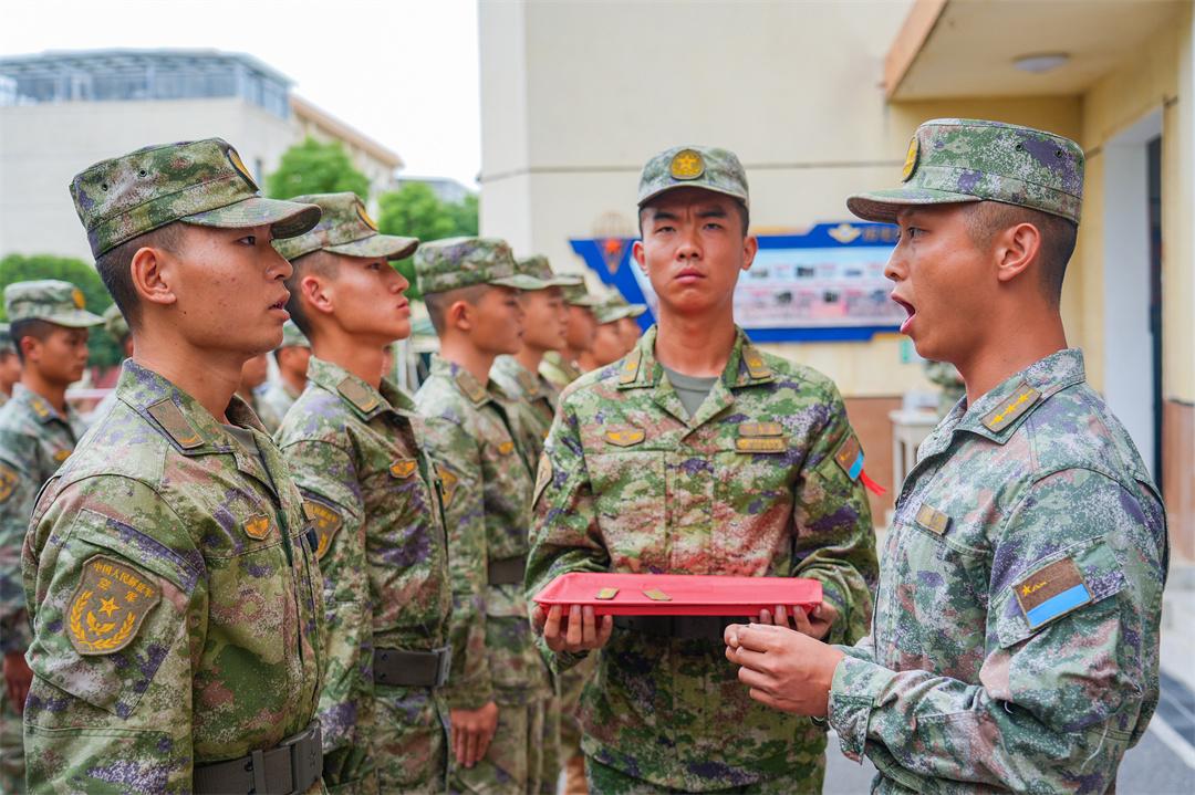 图为举行入连仪式,指导员成传港为新同志们授予荣誉编号,注入英雄血脉。盛海伦 摄