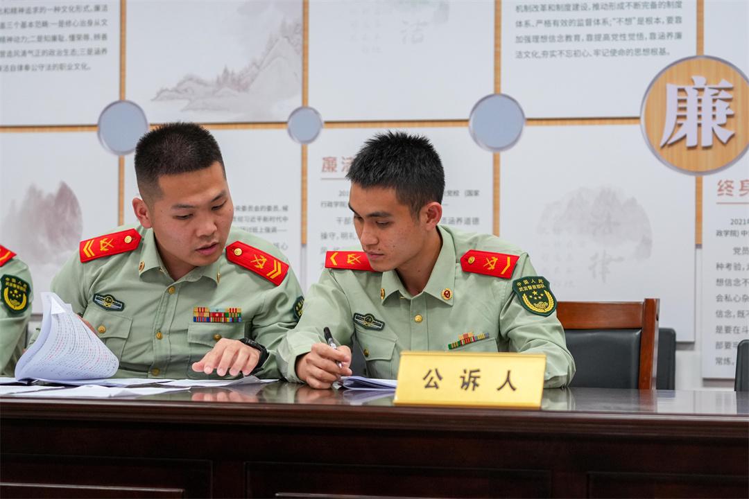 “现在开庭!”随着“审判长”敲响法槌,“庭审”在武警后勤学院学员某大队拉开帷幕。