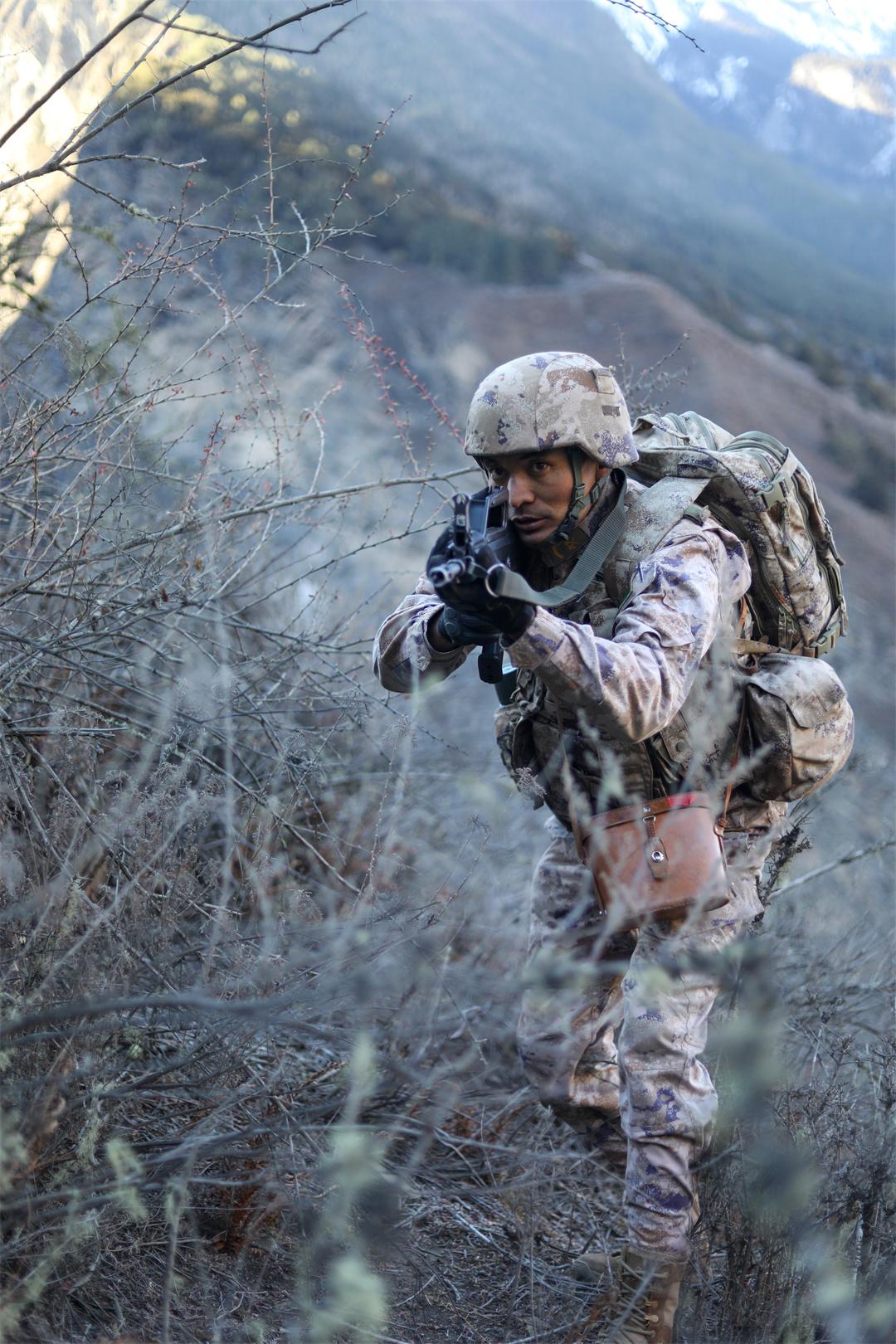 今年7月,连队组织“阿相比拉”巡逻。此时刚开山不久,又逢雨季,雪雨交加,次罗布带领侦察班走在最前面。“鹰嘴崖”崖壁倾角70多度,此时冰锥易落,需拉大间距观察通过;“沼泽地”东侧30米有硬土层,可绕行避陷……凭借对防区的熟悉,他一次次带领队伍规避风险,安全抵达最前沿。