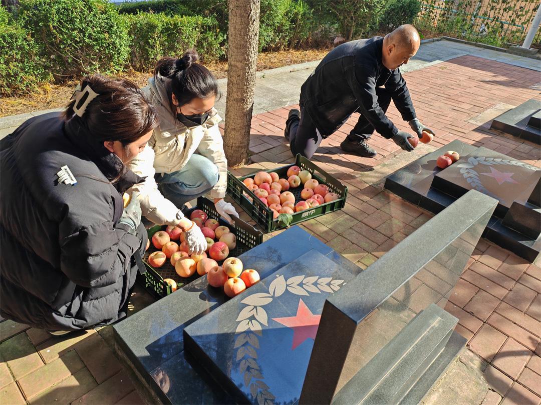 “这是群众自发传承红色基因的生动缩影。”陵园管理所所长石计书指着陆续加入摆放队伍的人群说,每年纪念日前后,老兵、学生、干部、退役军人都会自发前来,有老兵对着苹果敬军礼,有孩童在墓碑前认真系上红领巾。千颗苹果让抽象的英烈精神变得可触可感,成为最好的爱国主义教材。