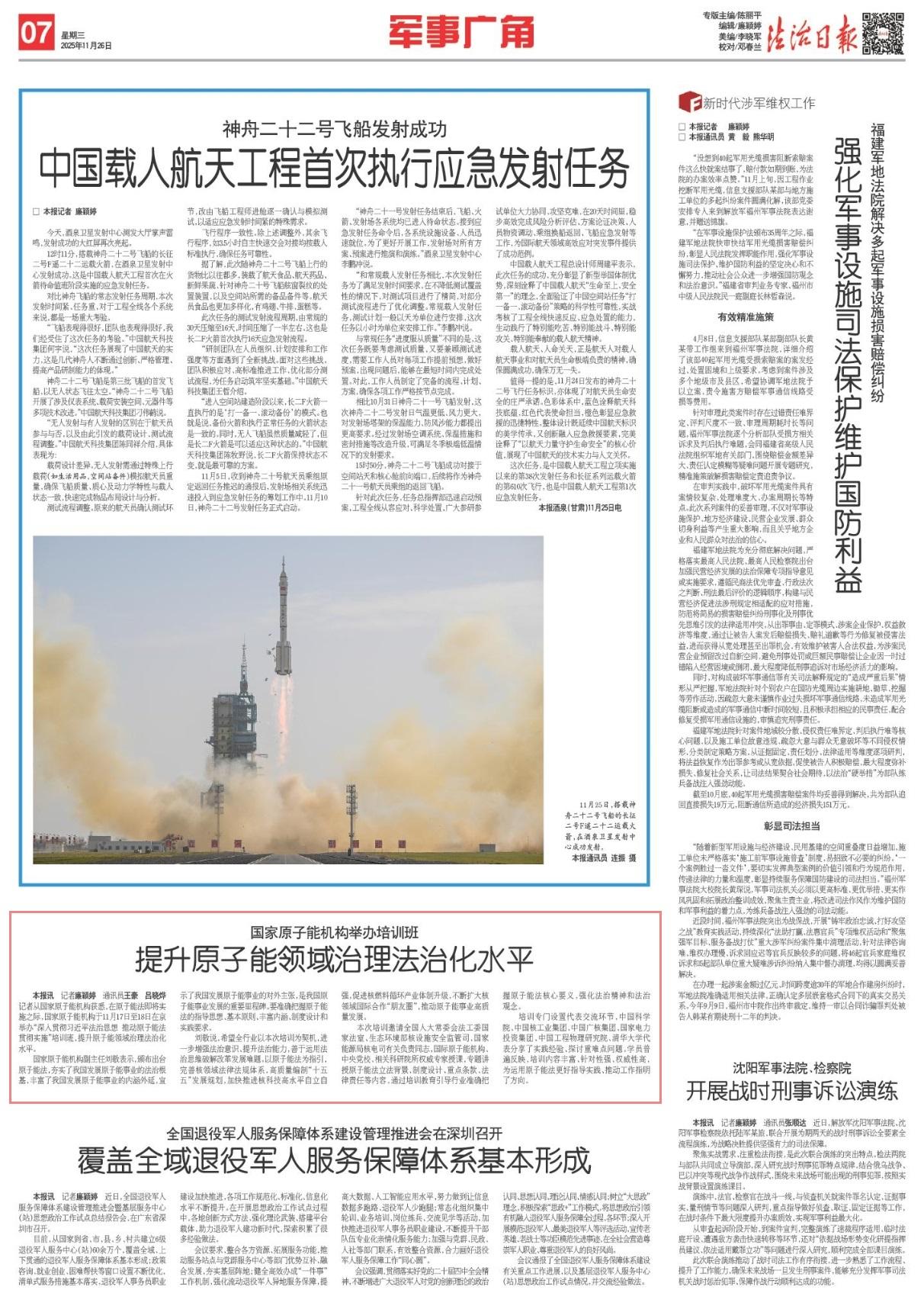 记者从国家原子能机构获悉,在原子能法即将实施之际,国家原子能机构于11月17日至18日在京举办“深入贯彻习近平法治思想 推动原子能法贯彻实施”培训班,提升原子能领域治理法治化水平。