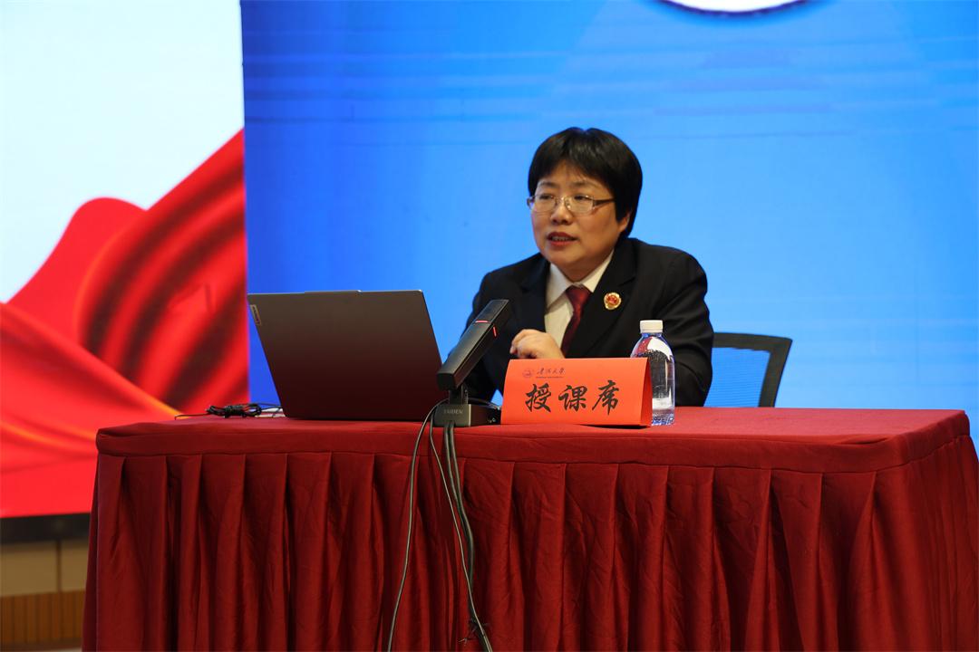 青海省人民检察院第二检察部主任马玉兰以《铸就法治基石,成就青春梦想》为题首先开讲,她以质朴的语言为同学们系统讲授了实行法治的历史渊源与深刻考量,以及党的十八大以来我国法治建设取得的历史性成就,深刻剖析了宪法作为治国安邦总章程,对保护公民权利、维护社会秩序的基石作用。她勉励青年学子,要主动学习宪法法律,用法律武器护航青春梦想,在法治中国的宏伟画卷中描绘属于自己的精彩篇章。