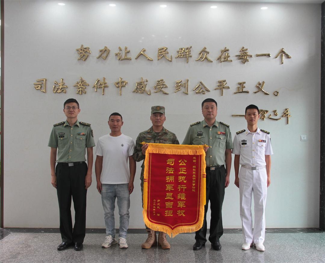 图为部队官兵向昆明军事法院赠送锦旗。