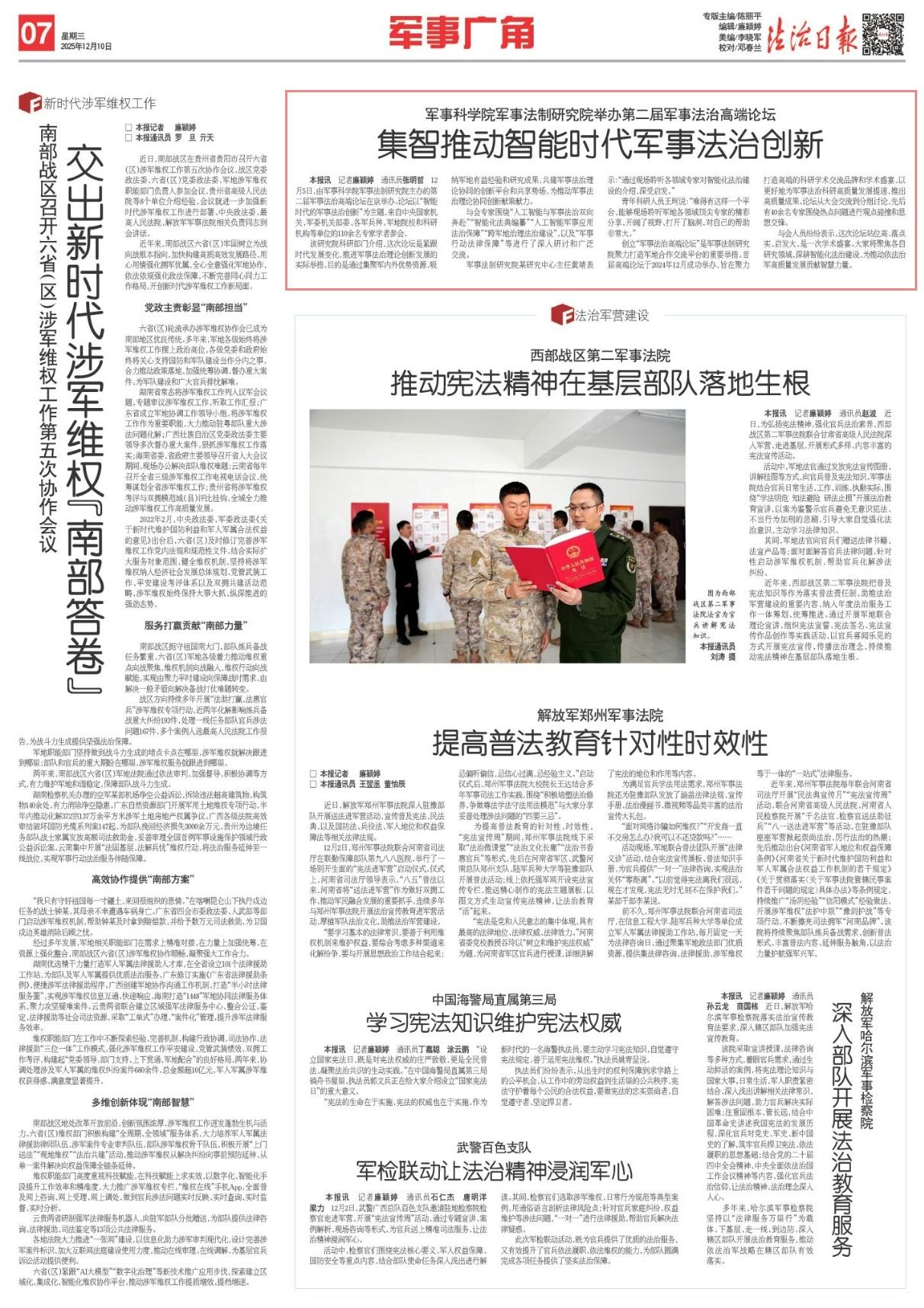 12月5日,由军事科学院军事法制研究院主办的第二届军事法治高端论坛在京举办。论坛以“智能时代的军事法治创新”为主题,来自中央国家机关、军委机关部委、各军兵种、军地院校和科研机构等单位的110余名专家学者参会。