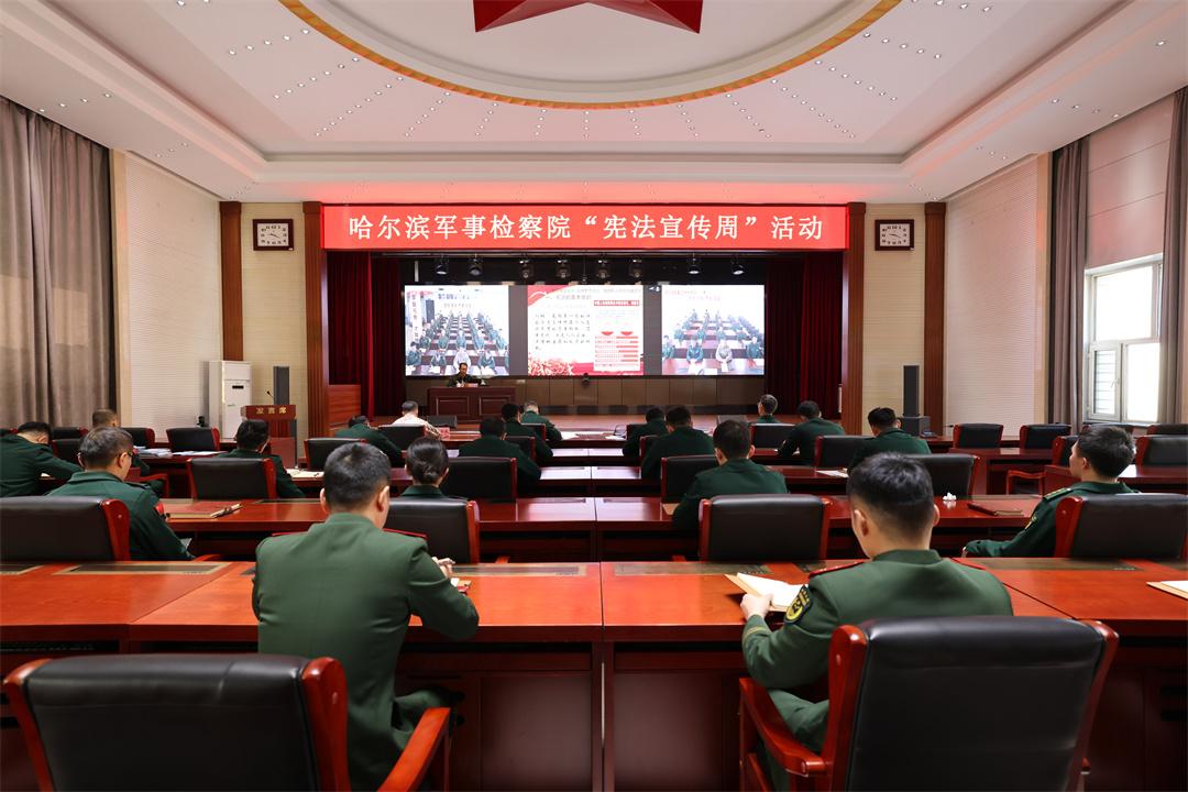 近日,解放军哈尔滨军事检察院落实法治宣传教育法要求,深入辖区部队加强宪法宣传教育。