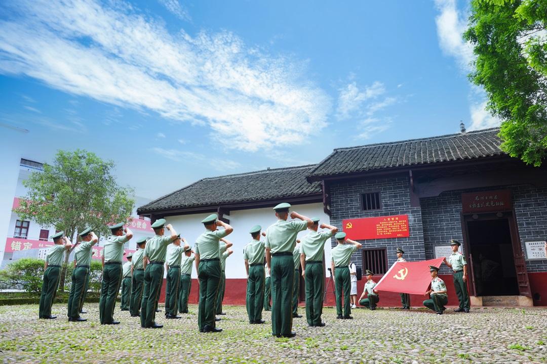 图为武警炎陵中队组织官兵赴“支部建在连上”实践地叶家祠,开展入党宣誓暨重温誓词活动。