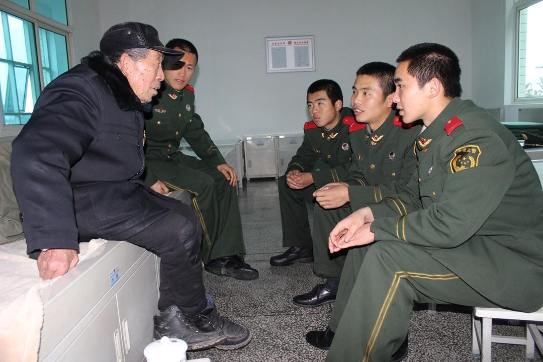 图为武警炎陵中队邀黄继光同志生前同班战友游克源来队参观。