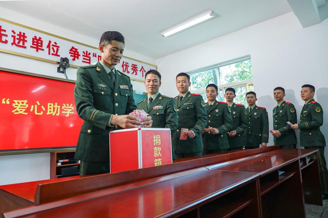 图为武警炎陵中队组织开展“爱心助学”捐款活动。