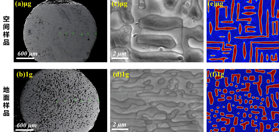图为空间及地面Fe-Co-B合金样品显微图像与凝固组织。