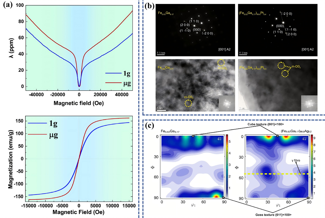 图为空间及地面铁基磁致伸缩合金样品多相微结构调控与性能优化。