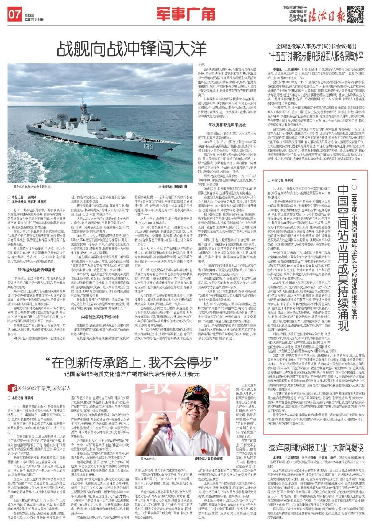 1月8日,中国载人航天工程办公室发布2025年度《中国空间站科学研究与应用进展报告》(以下简称《报告》)。