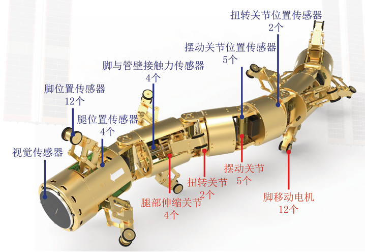 图为空间站管道检测机器人结构、传感器以及自由度配置。