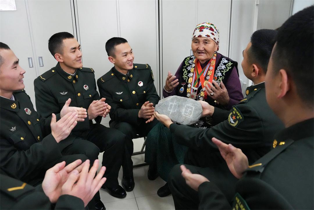 十万“中国石”,一颗戍边心。布茹玛汗老人爱国戍边的故事成为全连官兵淬炼强军思想、激发戍边热情的强大动力。新兵陈大卫看着石上深浅不一的刻痕,激动地说:“老大妈的故事并不惊天动地,却让我真正明白,守好边、固好防,就是我们肩上最重的担子。”