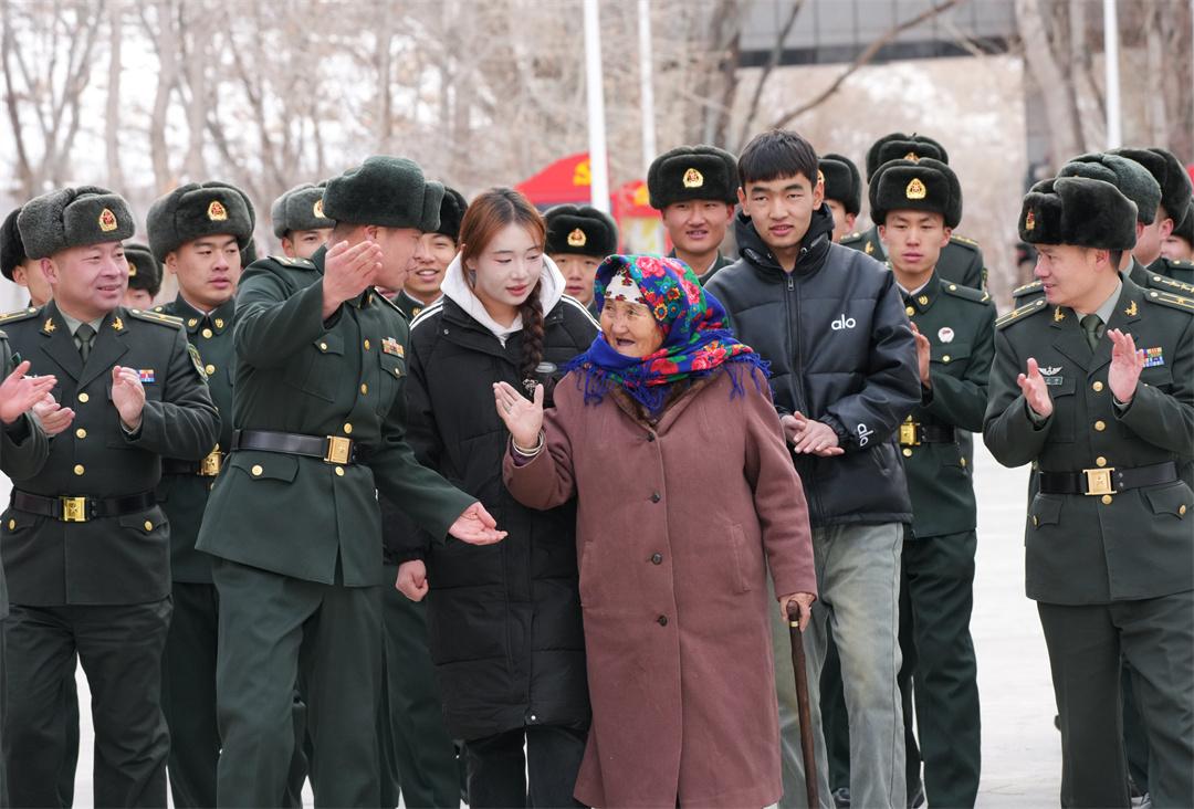 得知连队又来了六名新兵,布茹玛汗执意要去看看。坐在床沿,她握紧年轻战士的手,讲述起往事。旧时代的阴霾、新中国的光芒、共产党的恩情、解放军的亲……说到动情处,她不时抬手擦拭眼角。