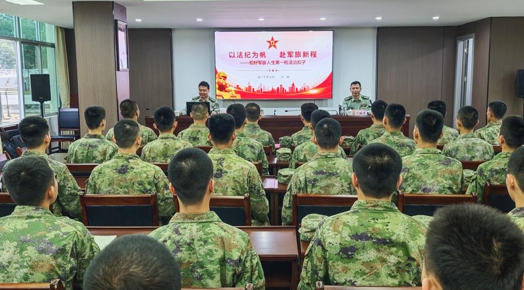 近日,解放军海口军事法院应邀赴海南省某区县预定新兵役前教育基地,开展“以法纪为帆、赴军旅新程”专题法治宣讲,帮助预定新兵扣好军旅人生第一粒法治扣子。