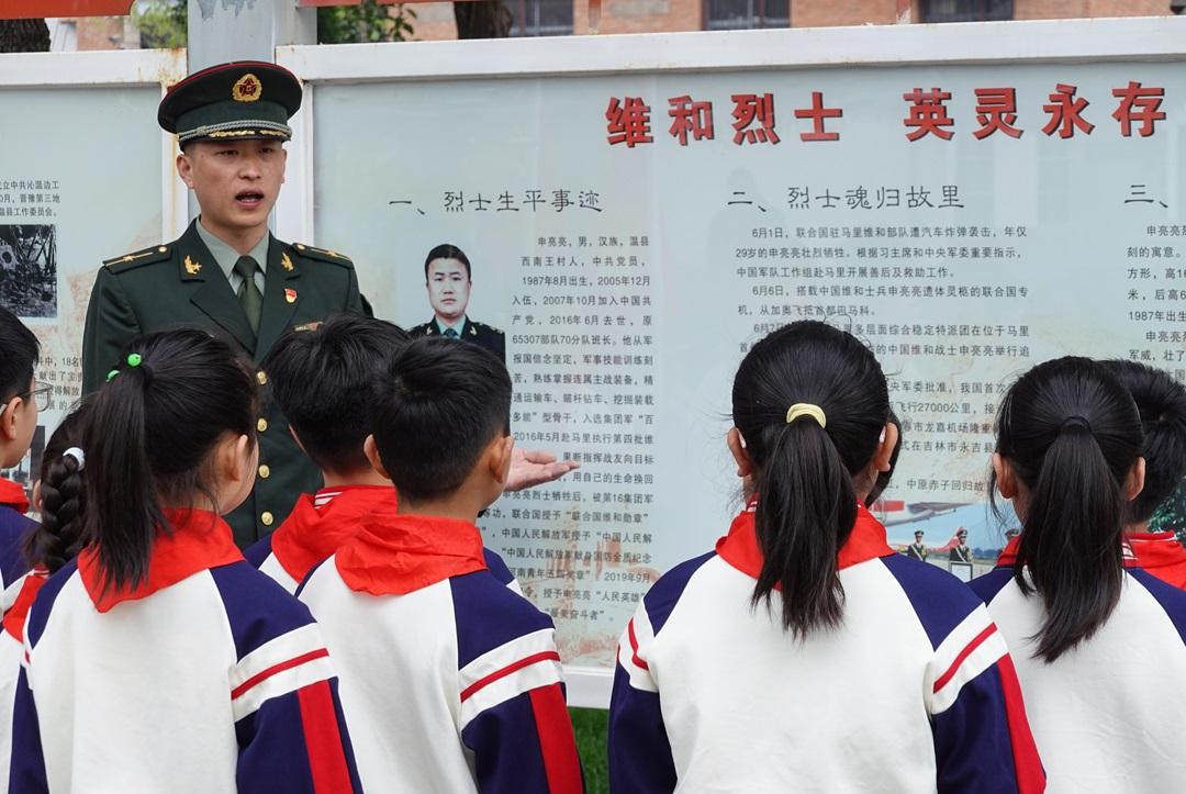该旅驻地烈士陵园,每年有数万人次来到这里,缅怀为维护世界和平牺牲的“人民英雄”。讲解员张硕对前来参观的学生们说:“申亮亮是部队的英雄,也是我们心中的英雄。”