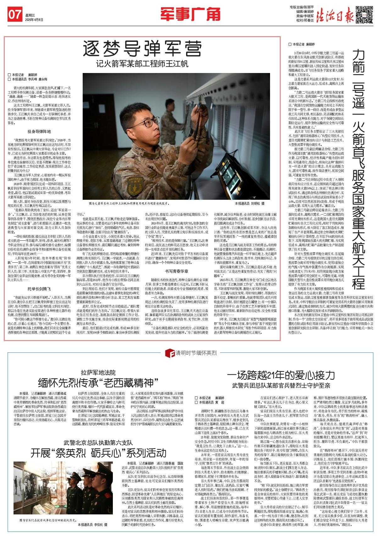 这名工程师叫王江帆,火箭军某部文职人员。投身导弹军营5年来,伴随着火箭军转型加速的铿锵步伐,王江帆庆幸自己成为一名导弹托举者,并为之奋进拼搏,不断在特种设备检测岗位书写优秀答卷。