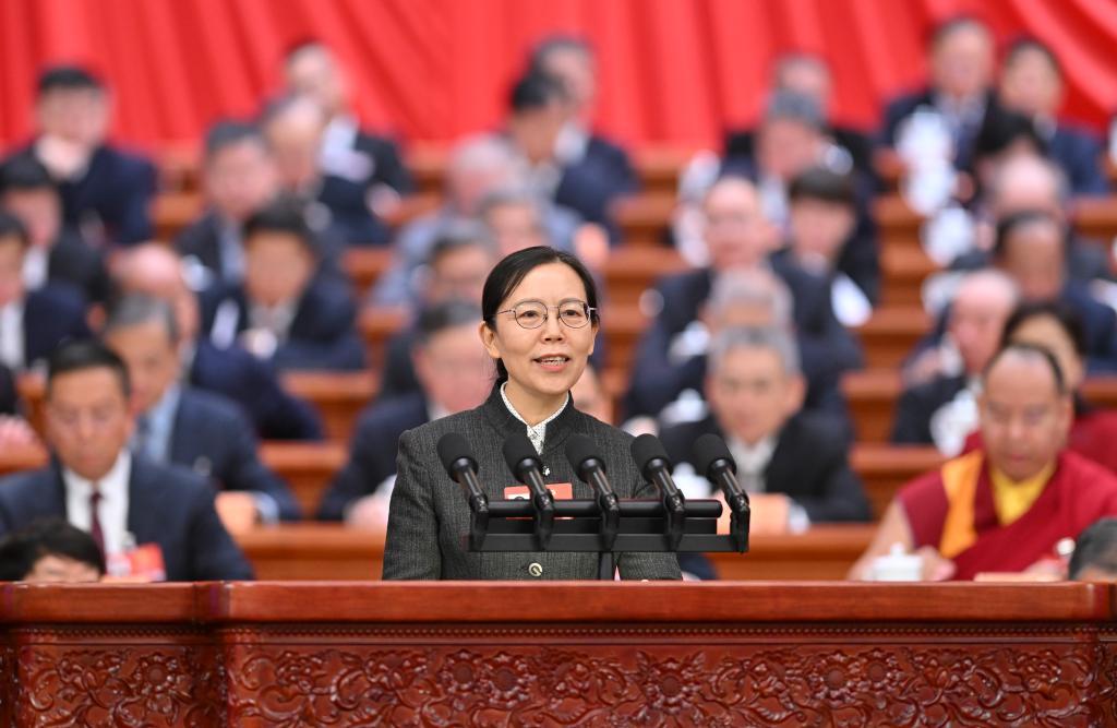 3月8日,全国政协十四届四次会议在北京人民大会堂举行第三次全体会议。这是陈星莺委员代表民革中央作题为《“台独”必是绝路 统一方为正道》的发言。