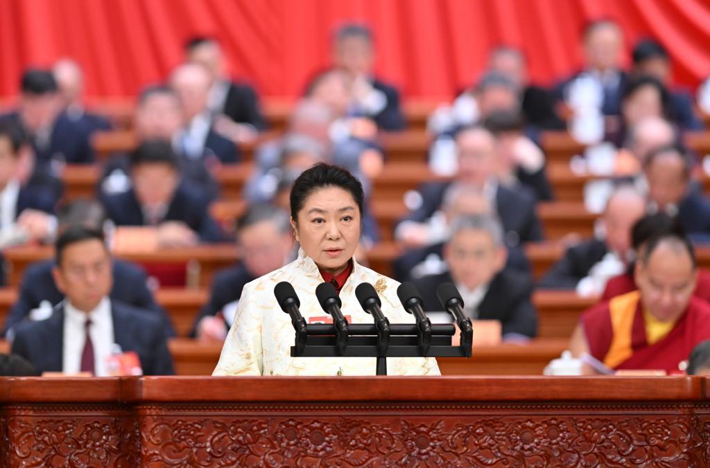 3月8日,全国政协十四届四次会议在北京人民大会堂举行第三次全体会议。这是田沁鑫委员作题为《秉承文艺初心 坚守人民立场》的发言。