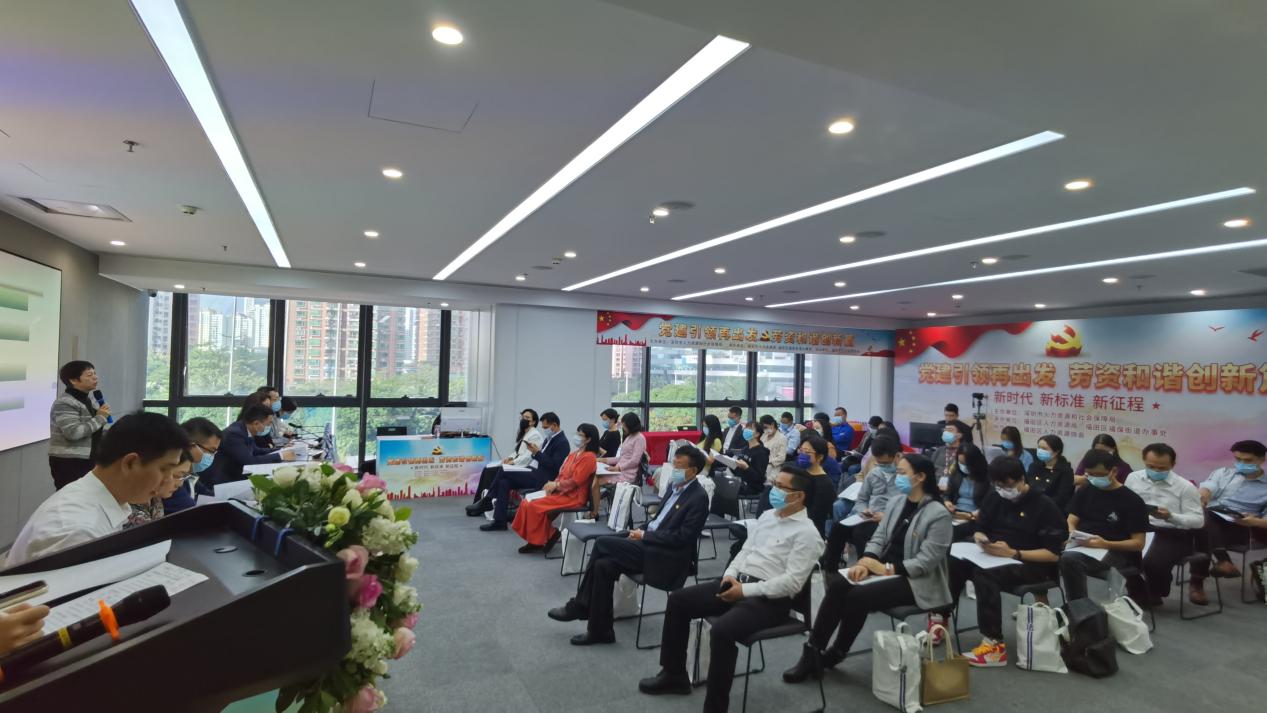 12月16日,广东省深圳市人力资源和社会保障局联合福田区人力资源局、福田区福保街道办事处在河套深港科技合作区福保园区党群服务中心举办“党建引领再出发 劳资和谐创新篇”座谈会。