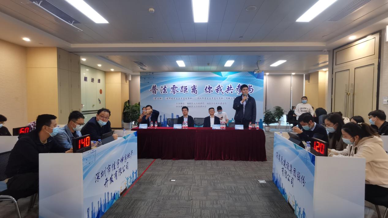为提高辖区建筑企业的法律意识,增强企业依法规范用工能力,近日,由广东省深圳市福田区人力资源局、福田区住房和建设局主办,福田区人力资源协会协办的“普法零距离 你我共参与”法律知识竞赛在福田区保税区联合金融大厦举行。