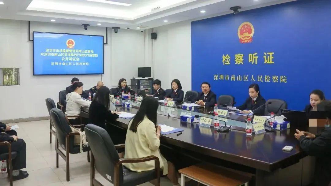 会议由南山区检察院党组成员、副检察长孙伟主持,深圳市市场监督管理局南山监管局副局长张海涛及相关部门人员、行政相对人、承办检察官参加听证会。