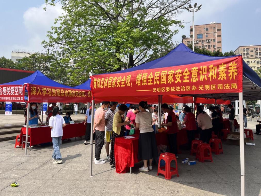 光明区委政法委联合区司法局、玉塘街道办等10家单位在辖内党建公园,围绕“贯彻总体国家安全观,增强全民国家安全意识和素养,夯实以新安全格局保障新发展格局的社会基础”这一主题,向过往的群众就什么是国家安全、危害国家安全的行为、公民应如何维护国家安全等内容开展宣传教育。