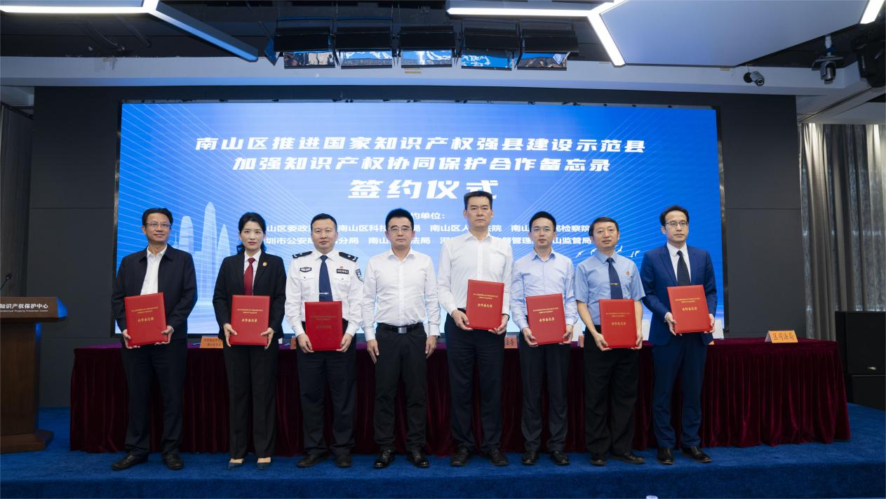 签约仪式上,南山区委政法委、南山区科技创新局、南山区人民法院、南山区人民检察院、南山区公安分局、南山区司法局、深圳市市场监督管理局南山监管局等7家单位共同签约了《推进国家知识产权强县建设示范县 加强知识产权协同保护合作备忘录》(以下简称《合作备忘录》)。