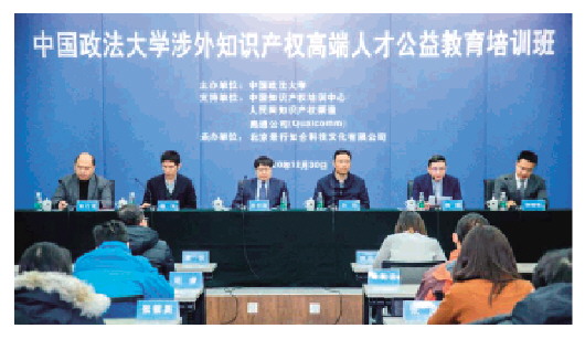 本报讯 记者蒋安杰 为积极落实习近平总书记在十九届中共中央政治局第二十五次集体学习上关于“全面加强知识产权保护工作,激发创新活力推动构建新发展格局”的重要指示精神,更好地履行社会服务责任,大力培养涉外法治人才,2020年12月30日,由中国政法大学主办,中国知识产权培训中心、人民网知识产权频道、高通公司支持,北京景行知合科技文化有限公司承办的中国政法大学涉外知识产权高端人才公益教育培训班开班仪式在中国知识产权培训中心成功举办。中国政法大学副校长常保国、中国知识产权培训中心主任孙玮、人民网经济部主任杨诚等出席仪式。这次公益培训也是中国政法大学打破高校和社会间体制壁垒,联合多家单位共同开展普法活动的一次有益尝试。