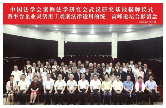 本报讯 记者刘志月 见习记者柳源远 5月15日,“中国法学会案例法学研究会武汉研究基地揭牌仪式暨平台企业灵活用工类案法律适用的统一高峰论坛”在武汉举行。本次论坛由中国法学会案例法学研究会作为指导单位,湖北省高级人民法院和武汉大学联合主办,武汉大学法学院、武汉大学网络治理研究院、武汉大学司法案例研究中心承办。来自中国法学会案例法学研究会、最高人民法院、湖北省高级人民法院、北京市第三中级人民法院、上海市第一中级人民法院、浙江省杭州市中级人民法院、湖北省武汉市中级人民法院、北京市海淀区人民法院、武汉市武昌区人民法院、上海市劳动人事争议仲裁院、清华大学、武汉大学、中国政法大学、中南财经政法大学等高校以及相关律师事务所和企业研究所等30余家单位的共计约70位嘉宾出席了本次论坛。