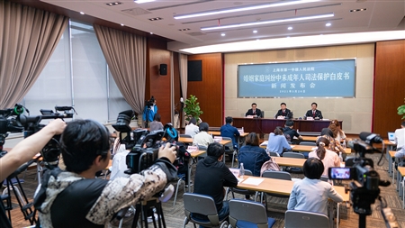 上海一中院婚姻家庭纠纷中未成年人司法保护白皮书新闻发布会现场。龚史伟 摄