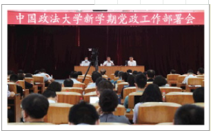 本报讯 记者黄洁 8月29日上午,中国政法大学在昌平校区召开2021年秋季学期党政工作部署会。会议回顾了走过的上半年,展望迎来的下半年,在坚持“一手抓疫情防控、一手抓事业发展”的总基调下,对新学期党政工作进行全面部署,确保学校各项工作有序推进。中国政法大学党委书记胡明,校长马怀德,副校长冯世勇,党委副书记、纪委书记刚文哲,党委副书记高浣月,副校长李双辰、时建中、常保国、李秀云出席会议,党建督导员、各二级单位负责人参加会议。会议由冯世勇主持。