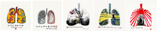 在舒勇“每日一画”创造的众多意象中,《同呼吸共命运》系列大概是最简单至极的表达。作品运用“肺”的基本形态作为背景容器,将世界各国著名艺术家作品及思想融进了这个基本形态的肺容器中。以此来表达,我们虽然生活在不同的地方,来自不同的国家,拥有不同的肤色、不同的文化,但是我们有同样的肺,呼吸在同一片蓝天下。