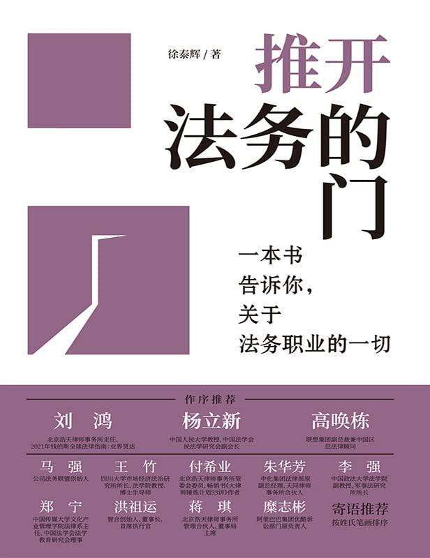 《推开法务的门》一书围绕法务的职业选择与规划、工作思维与技能、职场情商与相处、职业风险与责任等方面,以娓娓道来的文风、生动有趣的故事,全方位描绘了法务职业的方方面面。本书可帮助法务工作者重新审视自己在企业中扮演的角色,从而发挥自己职业的巨大价值;帮助律师、法官、法学研究者更好地了解法务的工作特质;帮助法学专业毕业生更清晰地看待职业的选择。