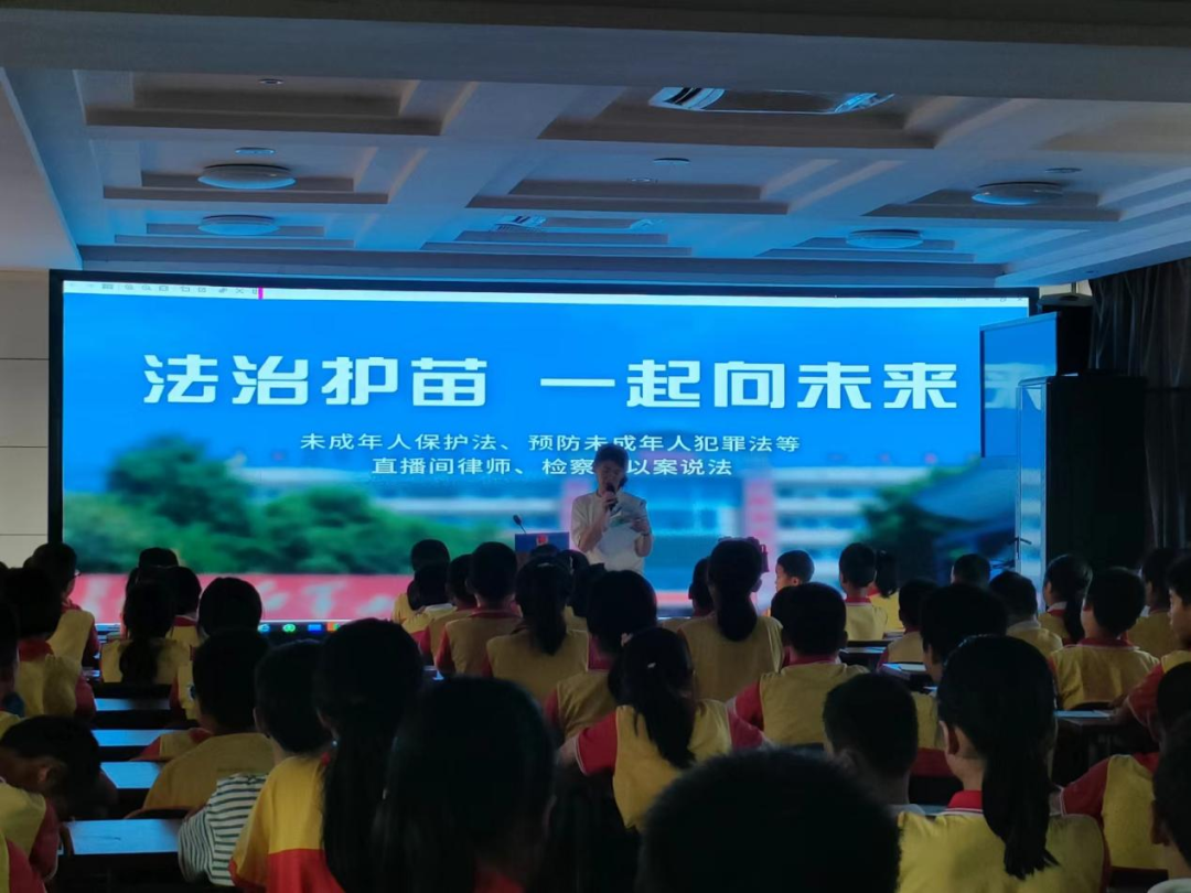 9月12日,江西于都县司法局联合县公安局、县教科体局、县应急管理局、县市场监督管理局、县人民检察院、共青团于都县委等部门在于都县长征源红军小学开展“法治护苗 一起向未来”法治进校园直播普法活动。