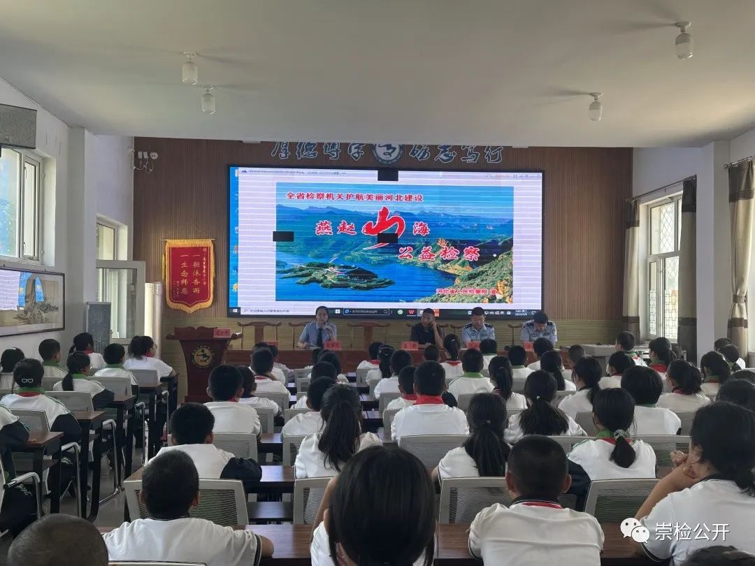 检察干警结合工作中的典型案例,向学生们讲解了公益诉讼的概念、背景、内容等法律知识,介绍了检察机关公益诉讼检察职能,解读未成年人保护、生态环境保护、民事诉讼法、行政诉讼法等相关法律法规,解析了河北省检察机关开展“燕赵山海·公益检察”专项监督的重要意义,号召广大未成年人都能积极参与到公益保护行动中来,积极向检察机关提供公益诉讼线索,共同守护天蓝、地绿、水秀的美丽崇礼,宣讲结束后向同学们发放了公益诉讼宣传册100余份。