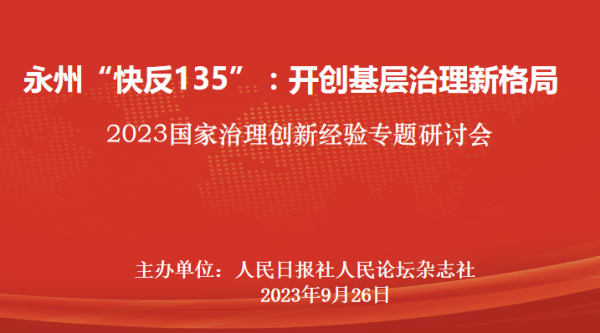 9月26日,“永州‘快反135’:开创基层治理新格局——2023国家治理创新经验专题研讨会”在北京人民日报社新媒体大厦举行。