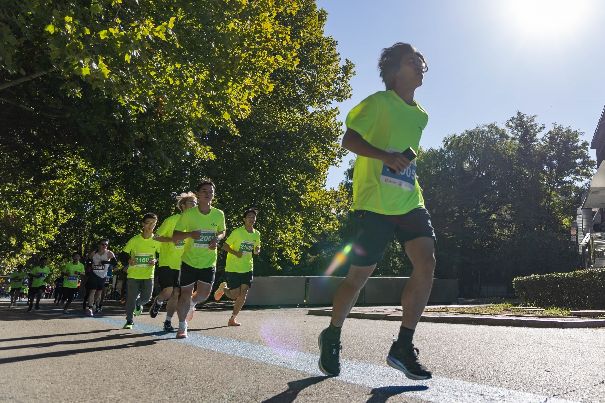 活动现场,“欢迎校友回家”“奔跑吧!法大人”横幅飘扬,法大人齐聚一堂,共享运动的激情。体育教学部也做了精心的赛事保障,配置了起、终点裁判,长跑线路沿线设置饮水站、校友服务站来帮助参赛者补充体力。比赛还在拓荒牛前设置了手环领取处,参赛者可自愿领取,计算圈数,为比赛增加了一丝趣味性。