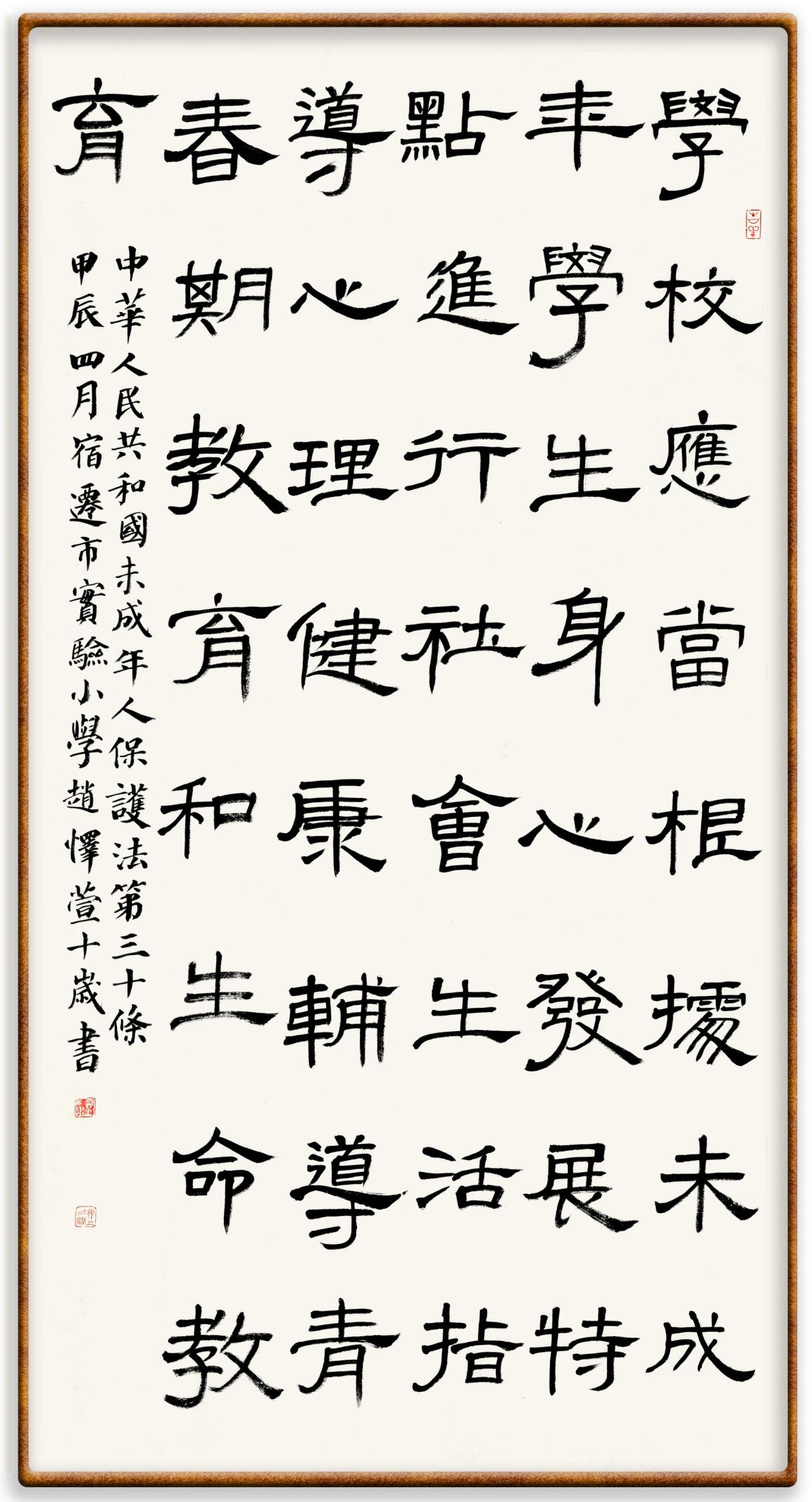 “六一”国际儿童节来临之际,法制日报社联合(全国)教育书画协会基础书法教育分会,推出“‘书·法’系列活动之书写《中华人民共和国未成年人保护法》活动”,邀请小朋友书写部分法条,让孩子们在浓浓的节日氛围中感受传统文化的独特魅力。