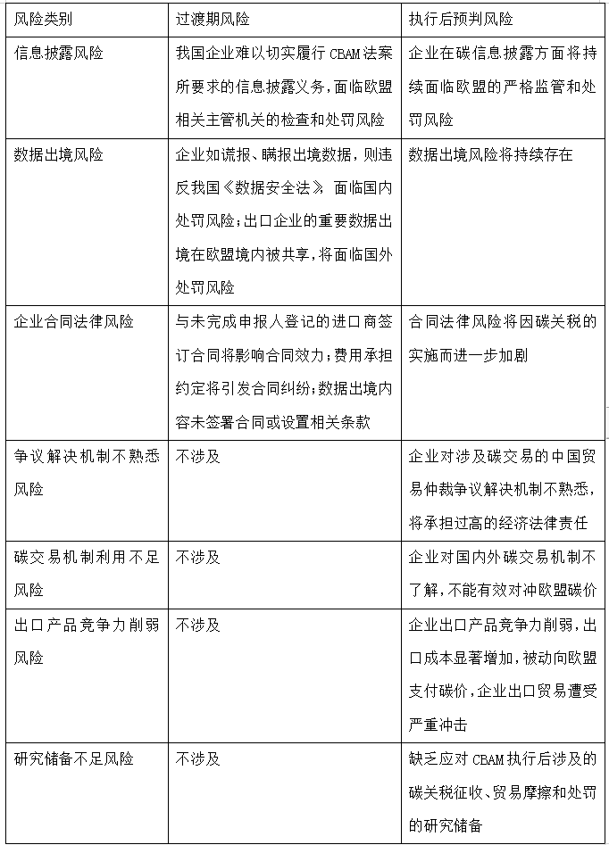 天达共和碳合规法律服务律师结合相关研究与实际案件将中国企业在欧盟CBAM中面临的现实困境按照影响方面、风险类别及潜在后果进行汇总,供大家参阅。