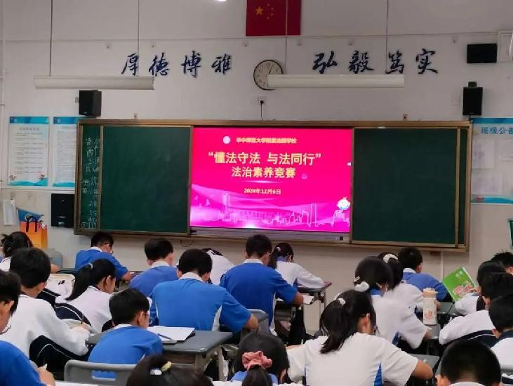 12月6日,学校举行中学生法治知识竞赛。本次法治知识竞赛进一步丰富了学生的法律知识,有助于锻炼学生的知识迁移运用能力,使学生深刻体验到道德与法治学习的乐趣与意义。