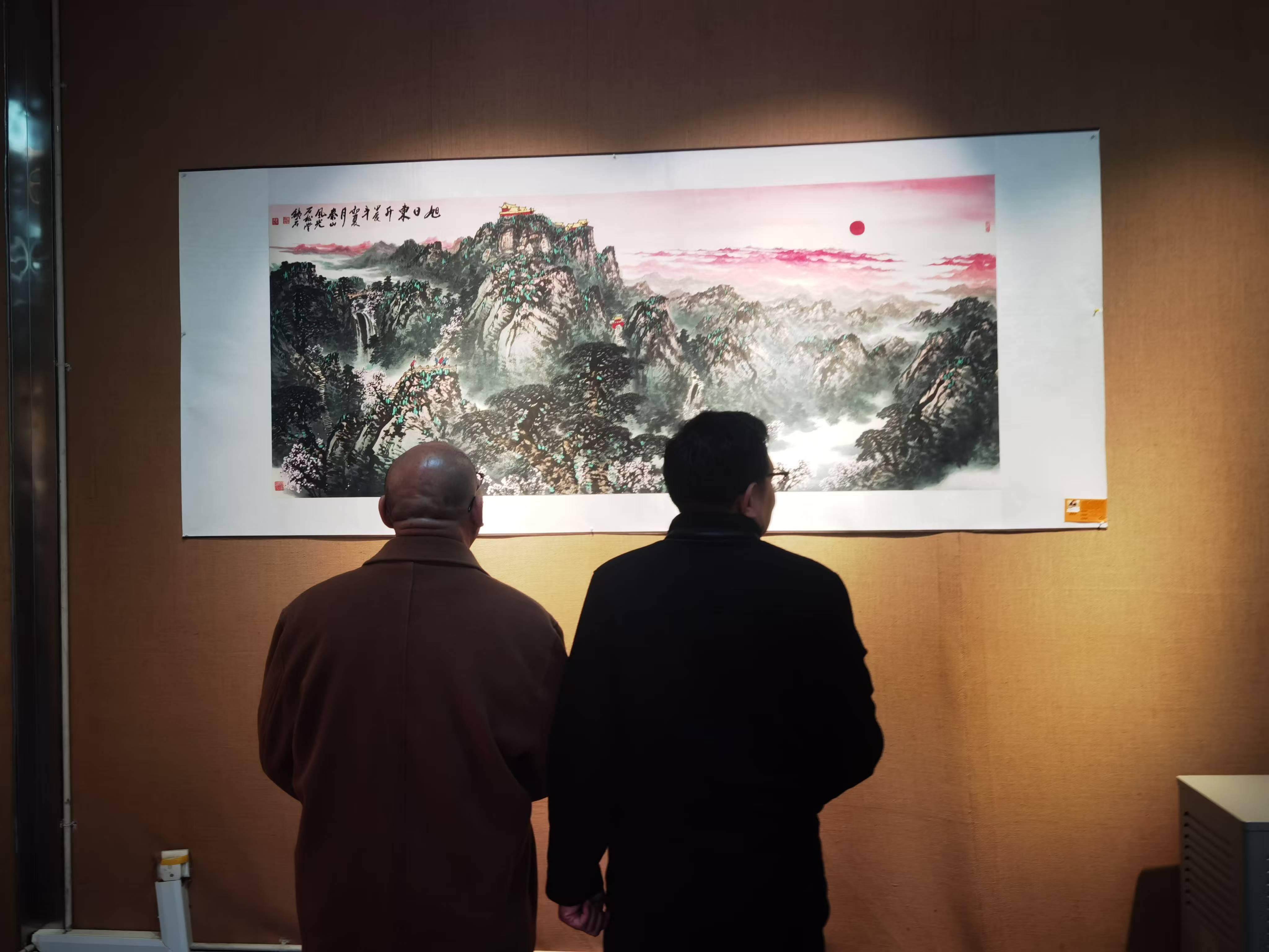 此次展出的画作中,不仅包括《黄山春韵》《春韵满园》《大明湖畔春意浓》等描绘自然景色的水墨山水画,还应邀创作了中国山水画《旭日东升》,此作以“泰山日出”为主题,呈现出早晨红日照耀下泰山大地焕发出的勃勃生机与活力,展示出一派欣欣向荣磅礴大气的美好景象。