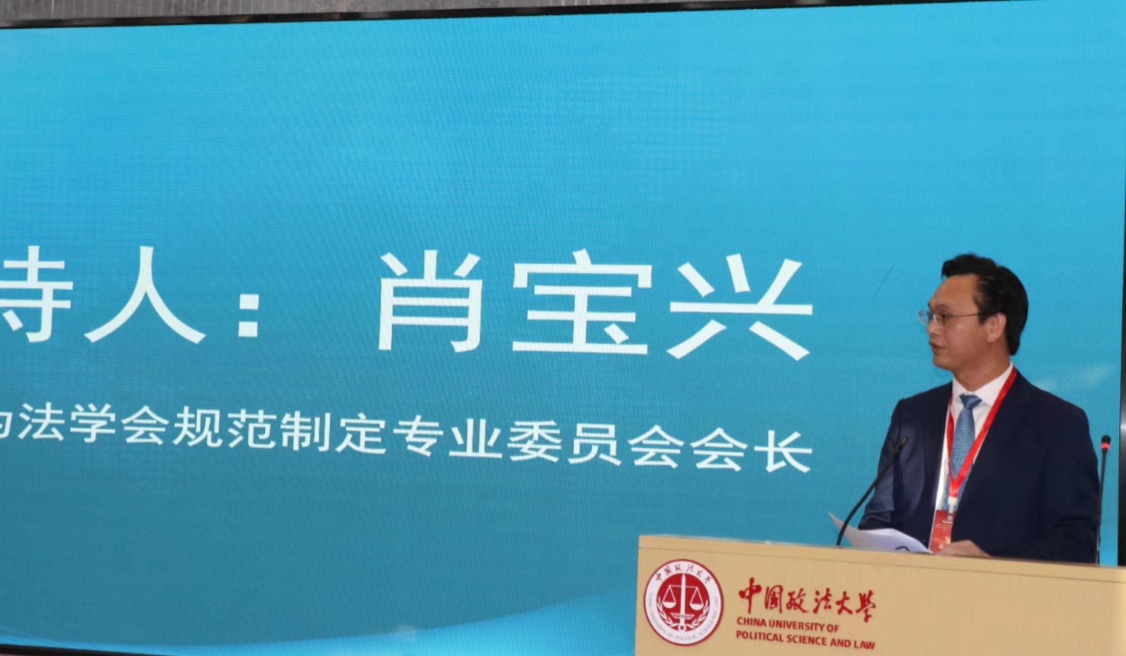 (中国行为法学会规范制定委员会会长肖宝兴主持开幕式)