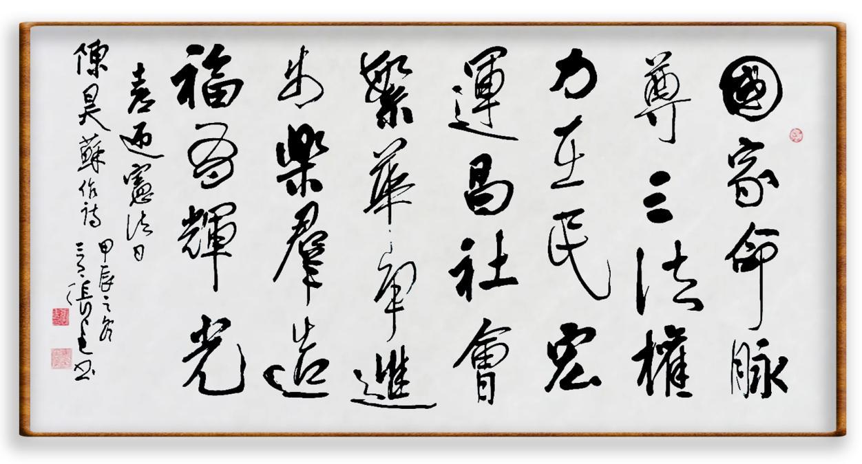 12月4日是第十一个国家宪法日。当天,由法制日报社、中国人民解放军仪仗司礼大队主办的“‘书·法’系列活动走进中国人民解放军仪仗司礼大队暨‘书·法’系列丛书书法作品集首发活动”在北京举行。活动得到中国人民对外友好协会原会长陈昊苏的热情支持,陈会长以《喜迎宪法日》为题赋诗二首,并在诗的开头写到:“在国家宪法日举行‘书·法’有关活动,意义十分重大。我谨寄上诗二首,表示热烈祝贺。”