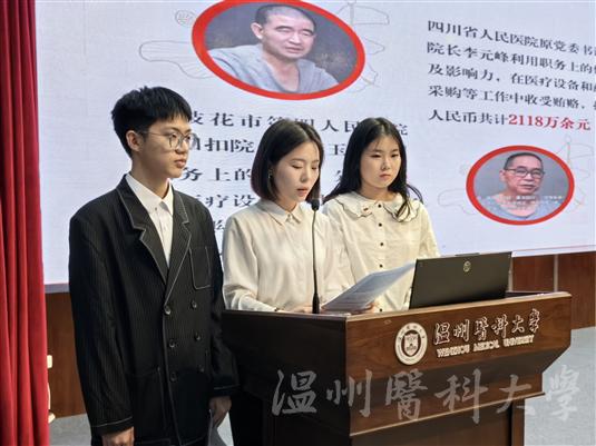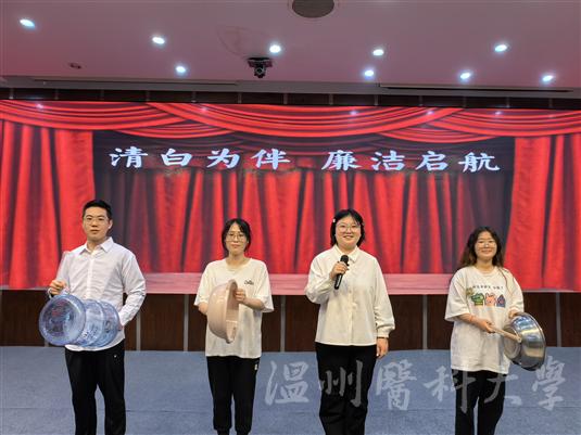 “遵纪守法最光荣,违法乱纪法不容,廉政典范人人做,称颂!贪污受贿一念间,惶惶终日寝食难安,法网恢恢终无漏,严办!”近日,温州医科大学学生党员在“板块廉洁课堂”上编排的《清白为伴 廉洁启航》三句半,明快的节奏、就地取材的“打击乐器”、别开生面的学生廉洁文化微党课,赢得台下师生的阵阵喝彩。