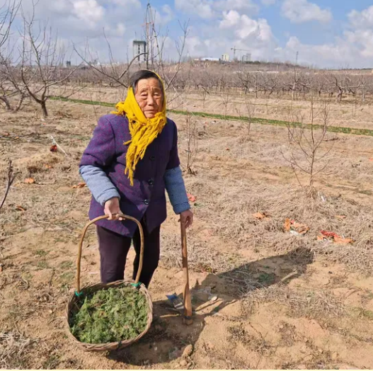 在乍暖还寒的初春时节,大地似乎还没有完全从冬日的沉睡中苏醒,一片萧瑟中夹杂着几抹嫩绿的生机。就在这片尚未完全复苏的田野上,我的84岁老母亲,身穿厚重的棉衣,手执一把略显陈旧的小铲子,正弯着腰,仔细地搜寻着什么。她的目光锐利而温柔,仿佛能穿透寒冷的空气,捕捉到那些刚刚探出头来的野菜——麦蒿。